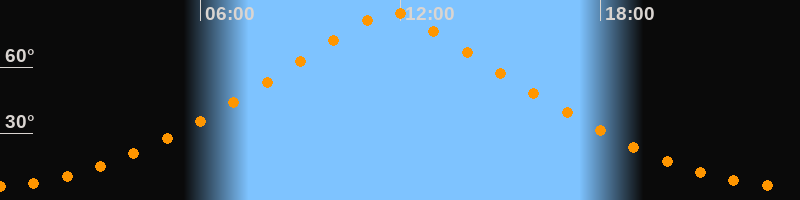 | Höchster Stand (Kulmination) | 11:43 Uhr (h = 84,9°) |