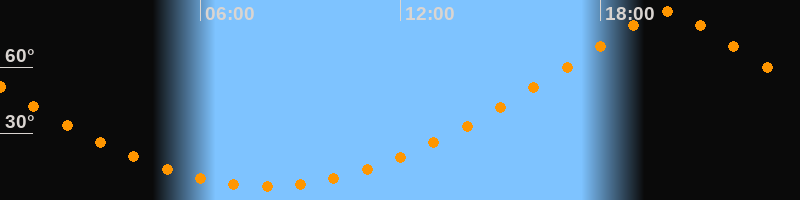 | Höchster Stand (Kulmination) | 19:59 Uhr (h = 84,9°) |