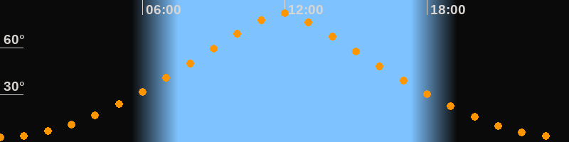 | Höchster Stand (Kulmination) | 11:54 Uhr (h = 81,8°) |