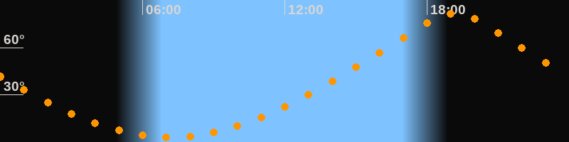 | Höchster Stand (Kulmination) | 19:10 Uhr (h = 81,8°) |