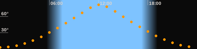 | Höchster Stand (Kulmination) | 12:07 Uhr (h = 81,8°) |