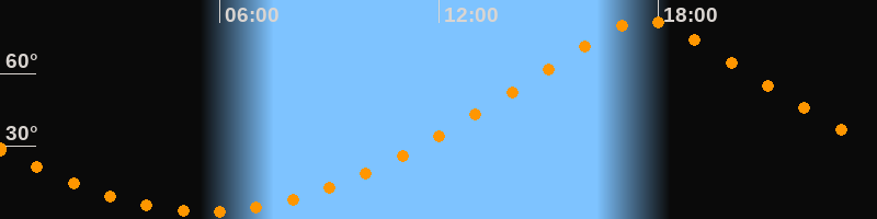 | Höchster Stand (Kulmination) | 17:38 Uhr (h = 81,8°) |