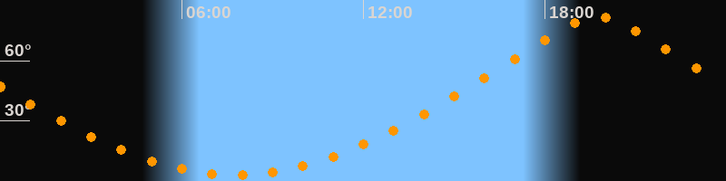 | Höchster Stand (Kulmination) | 19:45 Uhr (h = 81,8°) |