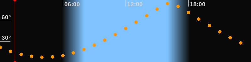 | Höchster Stand (Kulmination) | 16:13 Uhr (h = 85,6°) |