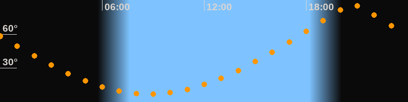 | Höchster Stand (Kulmination) | 20:45 Uhr (h = 85,7°) |
