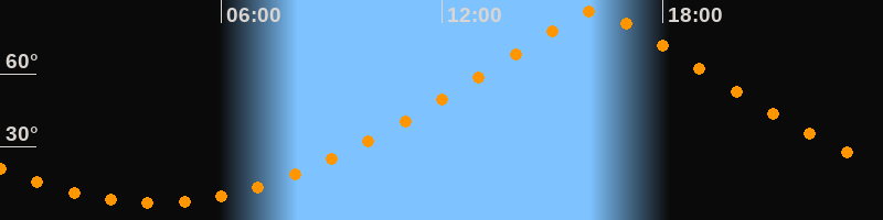 | Höchster Stand (Kulmination) | 16:10 Uhr (h = 85,7°) |