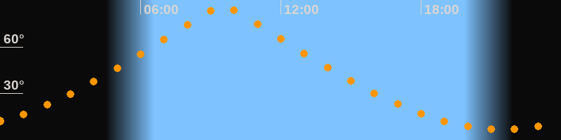 | Höchster Stand (Kulmination) | 09:31 Uhr (h = 85,7°) |