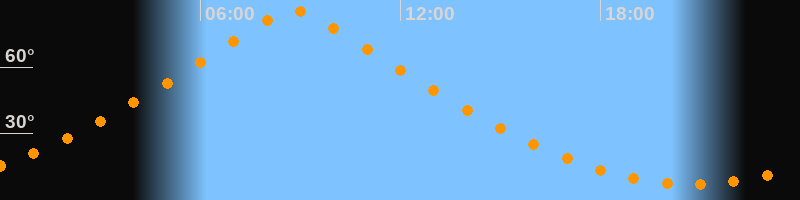 | Höchster Stand (Kulmination) | 08:48 Uhr (h = 85,7°) |
