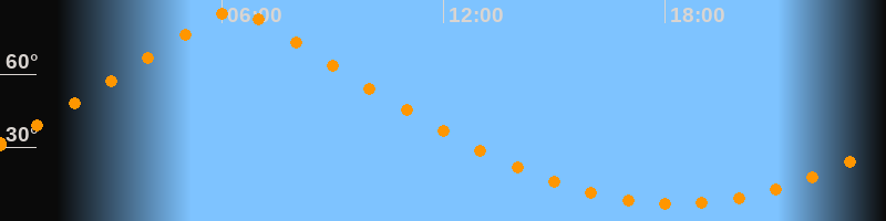 | Höchster Stand (Kulmination) | 06:20 Uhr (h = 85,7°) |