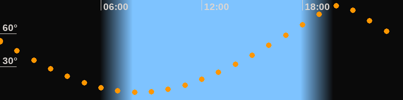 | Höchster Stand (Kulmination) | 20:11 Uhr (h = 85,7°) |