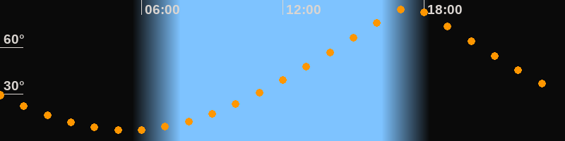 | Höchster Stand (Kulmination) | 17:22 Uhr (h = 85,7°) |