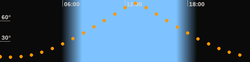 | Höchster Stand (Kulmination) | 12:59 Uhr (h = 85,7°) |