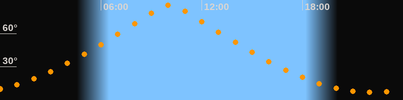 | Höchster Stand (Kulmination) | 10:06 Uhr (h = 85,7°) |