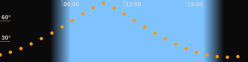 | Höchster Stand (Kulmination) | 09:58 Uhr (h = 85,7°) |