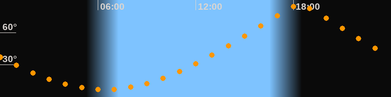 | Höchster Stand (Kulmination) | 18:21 Uhr (h = 85,7°) |