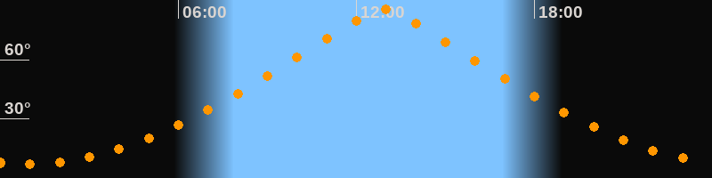 | Höchster Stand (Kulmination) | 12:55 Uhr (h = 85,7°) |