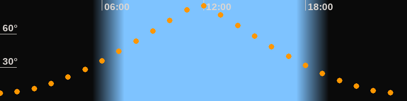 | Höchster Stand (Kulmination) | 11:44 Uhr (h = 85,7°) |