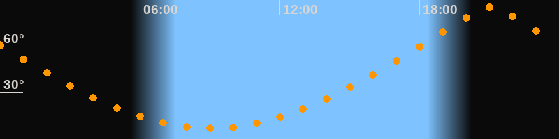 | Höchster Stand (Kulmination) | 21:02 Uhr (h = 85,7°) |