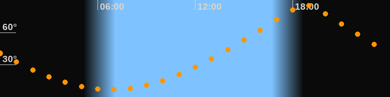 | Höchster Stand (Kulmination) | 18:47 Uhr (h = 85,7°) |