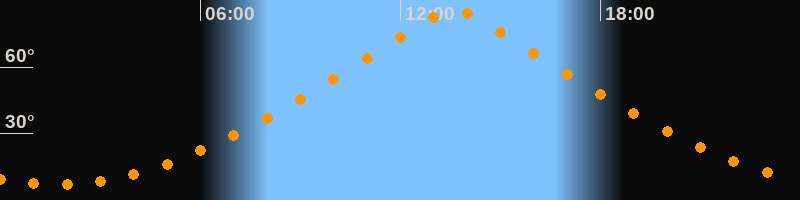 | Höchster Stand (Kulmination) | 13:36 Uhr (h = 85,7°) |