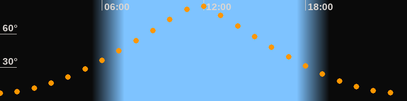 | Höchster Stand (Kulmination) | 11:41 Uhr (h = 85,7°) |
