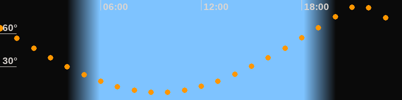 | Höchster Stand (Kulmination) | 21:27 Uhr (h = 85,7°) |