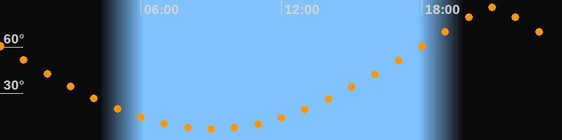 | Höchster Stand (Kulmination) | 20:59 Uhr (h = 85,7°) |