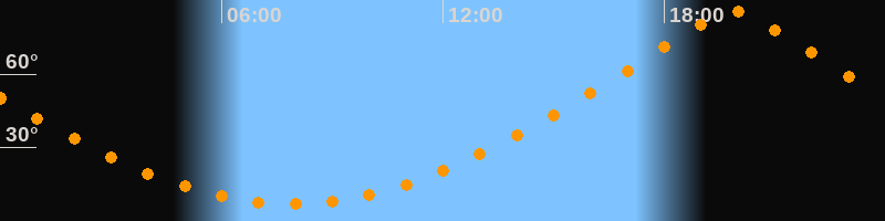 | Höchster Stand (Kulmination) | 19:52 Uhr (h = 85,7°) |