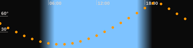 | Höchster Stand (Kulmination) | 19:25 Uhr (h = 85,7°) |
