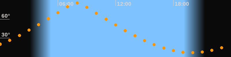 | Höchster Stand (Kulmination) | 07:57 Uhr (h = 85,7°) |