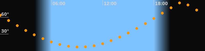 | Höchster Stand (Kulmination) | 21:16 Uhr (h = 85,7°) |