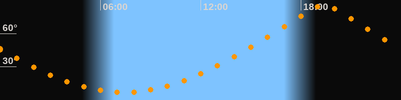 | Höchster Stand (Kulmination) | 19:23 Uhr (h = 85,7°) |
