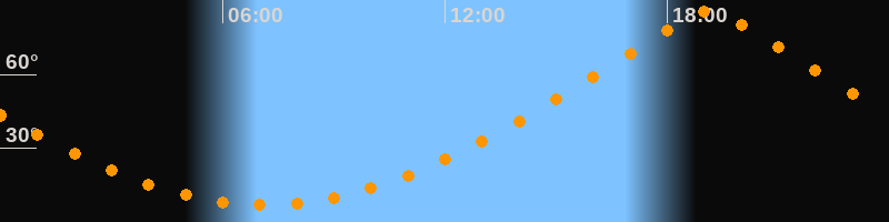 | Höchster Stand (Kulmination) | 19:07 Uhr (h = 85,7°) |