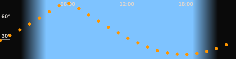 | Höchster Stand (Kulmination) | 06:44 Uhr (h = 85,7°) |