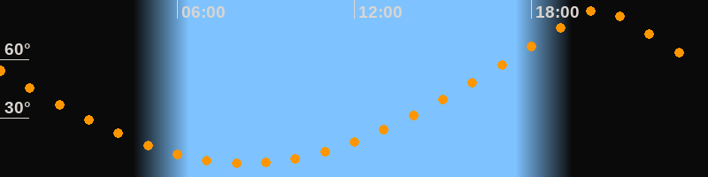 | Höchster Stand (Kulmination) | 20:19 Uhr (h = 85,7°) |