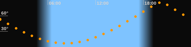 | Höchster Stand (Kulmination) | 20:11 Uhr (h = 85,7°) |