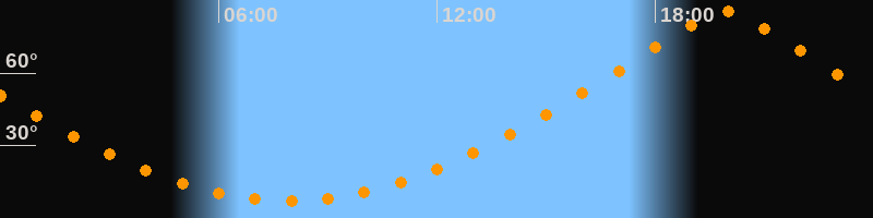 | Höchster Stand (Kulmination) | 19:55 Uhr (h = 85,7°) |