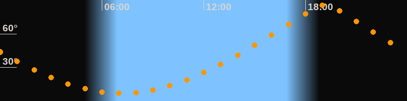 | Höchster Stand (Kulmination) | 19:08 Uhr (h = 85,7°) |