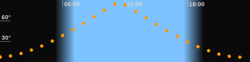 | Höchster Stand (Kulmination) | 11:24 Uhr (h = 85,7°) |