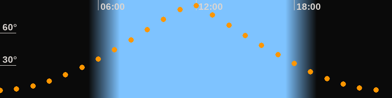 | Höchster Stand (Kulmination) | 11:43 Uhr (h = 85,7°) |