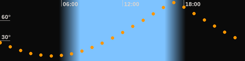 | Höchster Stand (Kulmination) | 17:01 Uhr (h = 86,4°) |