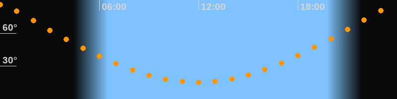| Höchster Stand (Kulmination) | 23:55 Uhr (h = 86,1°) |