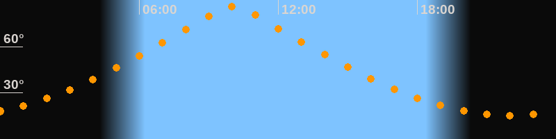 | Höchster Stand (Kulmination) | 10:01 Uhr (h = 86,1°) |