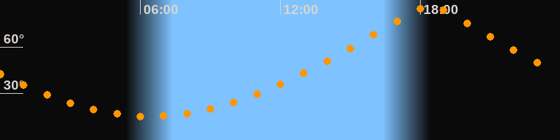 | Höchster Stand (Kulmination) | 18:25 Uhr (h = 86,1°) |