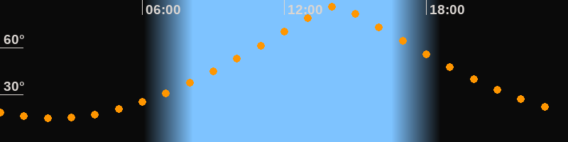 | Höchster Stand (Kulmination) | 14:10 Uhr (h = 86,1°) |