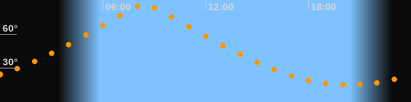 | Höchster Stand (Kulmination) | 08:25 Uhr (h = 86,1°) |