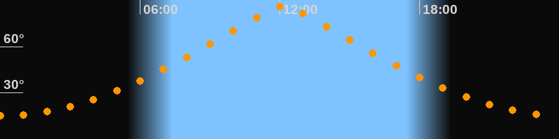 | Höchster Stand (Kulmination) | 12:09 Uhr (h = 86,1°) |