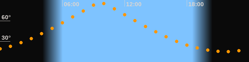 | Höchster Stand (Kulmination) | 09:41 Uhr (h = 86,1°) |