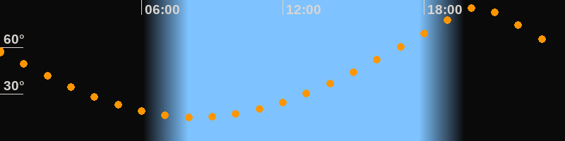 | Höchster Stand (Kulmination) | 20:17 Uhr (h = 86,1°) |