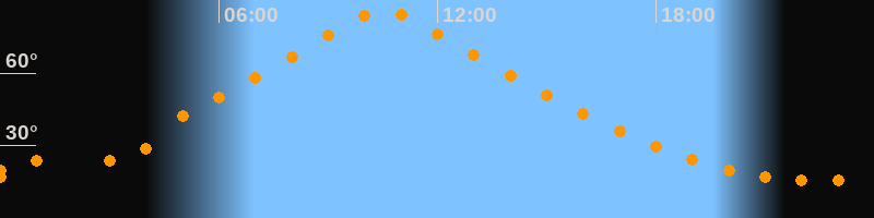 | Höchster Stand (Kulmination) | 10:32 Uhr (h = 86,1°) |